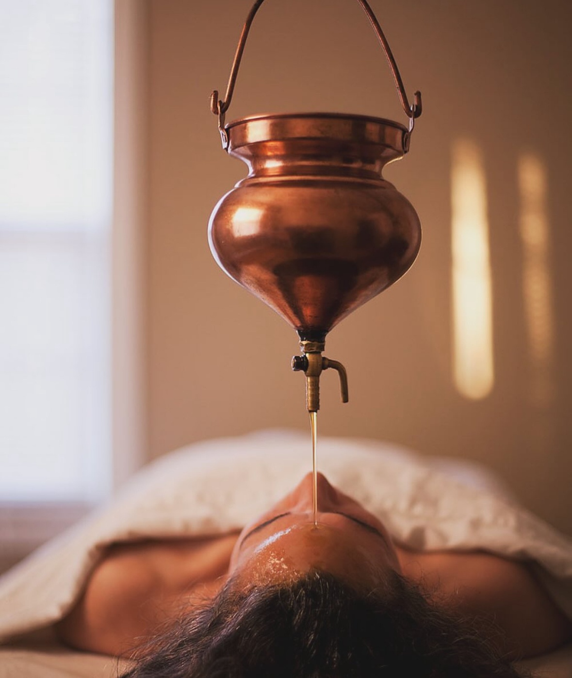 A deeply calming Ayurvedic therapy where a warm herbal oil is gently poured over the forehead and scalp, the face is massaged and cleansed, neck is massaged.